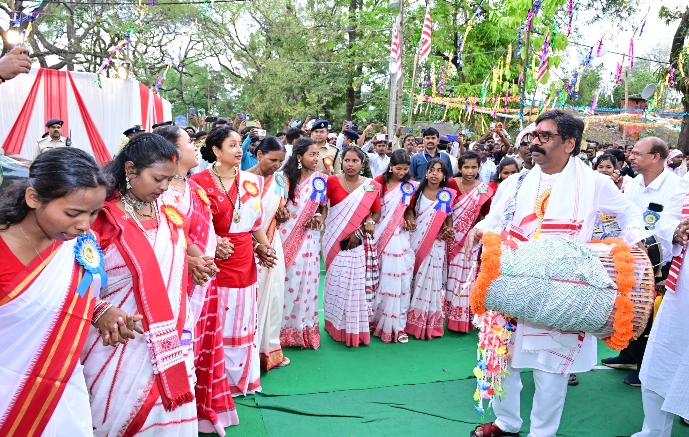 सरहुल महोत्सव के सांस्कृतिक कार्यक्रम के दौरान मुख्यमंत्री हेमंत सोरेन ढोल बजाते और पारंपरिक नृत्य करते नजर आए। उनके साथ उपस्थित लोगों ने भी पारंपरिक नृत्य में भाग लिया, जिससे पूरा माहौल उत्साह और उल्लास से भर गया।