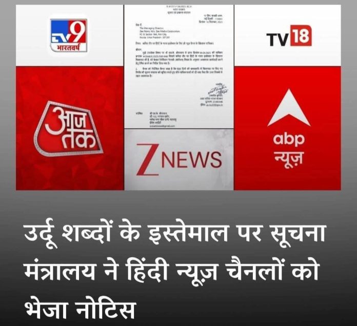 प्रमुख हिंदी न्यूज़ चैनलों को सरकार का नोटिस, उर्दू के प्रयोग पर मांगा जवाब